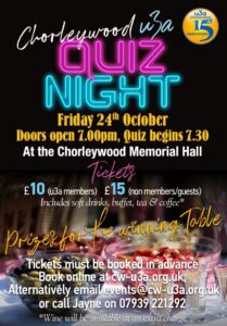 Join us for a fun and friendly Quiz Night on Friday 24th October at the Chorleywood Memorial Hall.